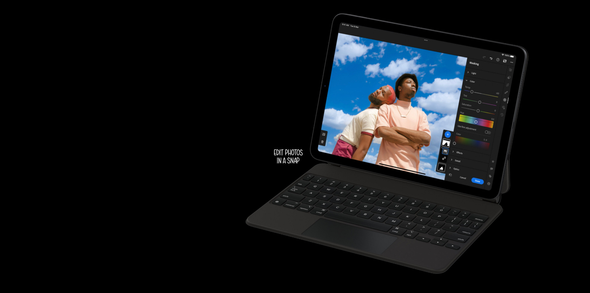 يجعل المحرك العصبي الجديد المكون من تصميم Apple المكون من 16 نواة في iPhone XS Max تحرير الصور باستخدام Adobe Lightroom أسرع من أي وقت مضى، حيث يمكنك تحديد السماء وإشراكها بذكاء دون رفع إصبعك.